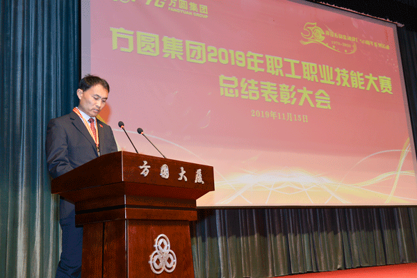 方圆集团工会主席、副总经理汪新军主持大会并总结了2019年方圆集团职工技能大赛各项赛事的比赛情况。公布了职工技能大赛奖励方案及获奖名单。