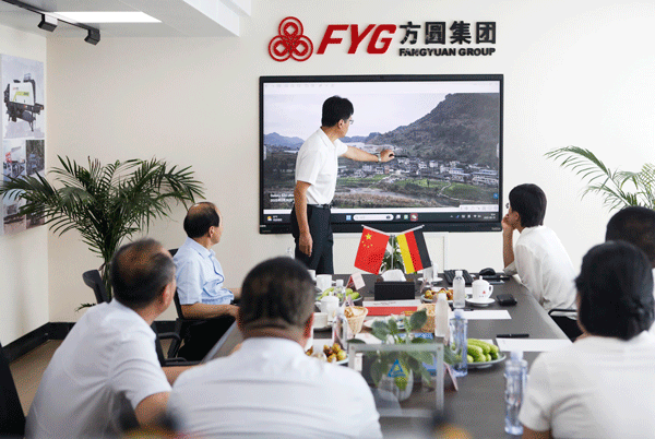 在方圆集团相关负责人的陪同下,Kemmann先生一行先后参观了集团主要生产车间、核心制造流程及多款成型样机,对方圆集团的生产工艺、产品质量及研发能力给予了高度评价:“FYG is still an amazing company with a great setup for the batching plant business. Hope we can do more business together in future” 这是继2013年Kemmann访问方圆集团之后时隔十二年的又一次到访,与方圆集团员工全程德语互动也给其留下了深刻印象。