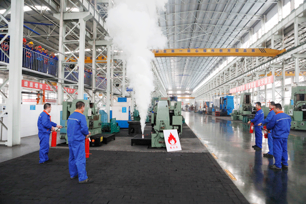 在演练现场,参加演练人员一同观摩了建设机械二厂组织开展的消防逃生演练。随着警报声响起,参演人员严格按照预定方案,进行消防灭火、报警、消防逃生及如何引导消防车进行灭火,整个操演过程动作熟练、迅速、组织有序,充分体现良好的应急响应能力和组织纪律性,达到预期目的。