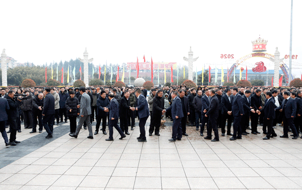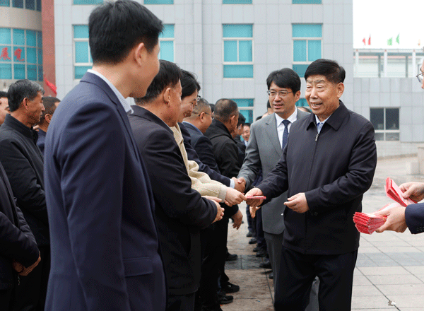 在方圆集团2026年春节开工动员大会上,集团董事局主席高秀为全体员工派发新年红包。