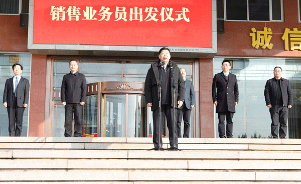 出发前夕,集团举行欢送仪式,为销售将士们壮行鼓劲。集团领导、各单位负责人及管理人员参加欢送仪式。集团副总经理汪新军主持仪式,副总经理赵勇作动员讲话,集团董事局主席高秀下达出发令。